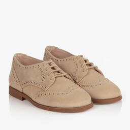 Smart brown shoes for baby boys by Mayoral, made in soft suede leather. They are comfortably lined in supple leather, with a cushioned leather insole and non-slip crêpe sole. The shoes fasten with a velcro strap across the foot.