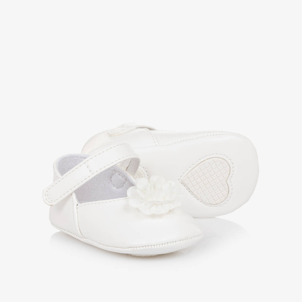 Пинетки белые из искусственной кожи с цветком для малышек