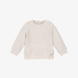 Mid-blue cotton sweater for older boys by Mayoral Nukutavake, with a ribbed stripe in the knit. Soft and lightweight, it makes an ideal extra layer for cooler days.