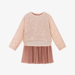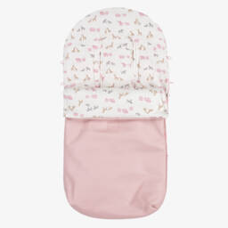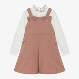 Cute pink shorts set for girls by Mayoral. The T-shirt is made in soft cotton jersey, with short flutter sleeves and bow detailing on the front. Knitted in a lightweight lacy fabric, the shorts have a fun zigzag pattern in pink, beige and orange. They are lined in soft cotton jersey and have an elasticated waist for a comfortable fit.