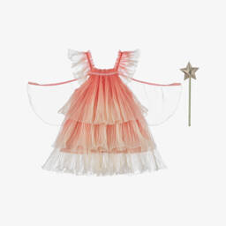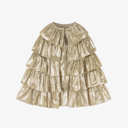 Fun for young dino enthusiasts, this dinosaur costume for boys and girls is by Meri Meri. The coppery brown cape is made in shiny lamé and has blue spikes along the back. The attached hood is softly padded and trimmed with felted facial detailing. There is a comfortable lightweight lining and an easy popper fastening at the neck.