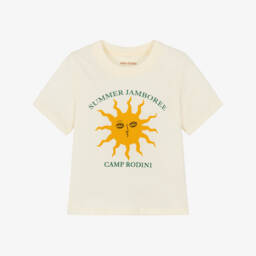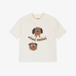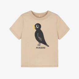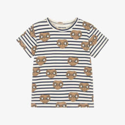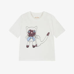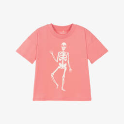 Little girls pale pink T-shirt by Mini Rodini, made in soft organic cotton jersey. Cute and casual, it has a relaxed crew neck and a playful blue horses print all-over.