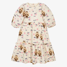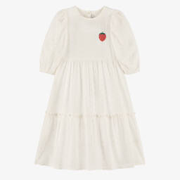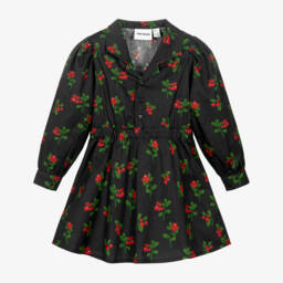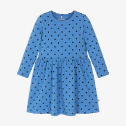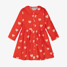 Lovely red dress for girls by Mini Rodini, with an eye-catching black dot pattern. Made in soft organic cotton jersey, it has a ruffled white broderie anglaise collar and popper fastenings on the back.
