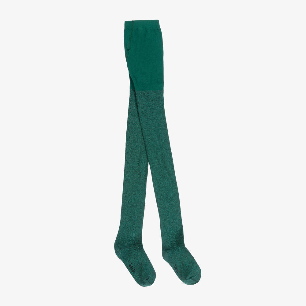 Добавьте блеска в её наряд с этими зелеными колготками для девочек от Molo из мягкого хлопкового трикотажа с металлической нитью для эффектного блеска. На подошвах черные жаккардовые логотипы для фирменного акцента.