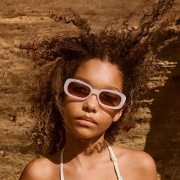 Heart-shaped sunglasses for girls by Molo, with transparent acrylic frames in vibrant orange. These fabulous sunglasses have slightly tinted orange lenses which offer maximum UVA and UVB protection. They are presented with a branded cloth, helping them stay clean and smear-free.