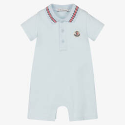 Pink shortie for baby girls, by luxury French brand Moncler Enfant. Made in soft cotton jersey, it has the brand's signature logo embroidered on the chest in pink and a rubberised logo badge in white on one sleeve.