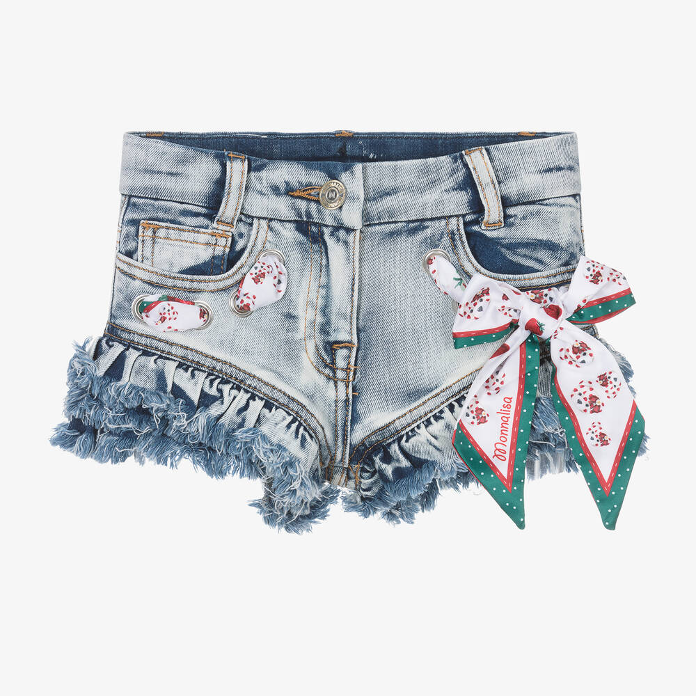 Girls Blue Denim Bow Shorts
