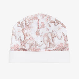 Adorable pale blue layette hat for baby boys from My Little Pie, made in super soft, organic Supima cotton. It has a lovely Little Prince-themed pattern, with a turned-up brim and cute 3D ears to complete the look.