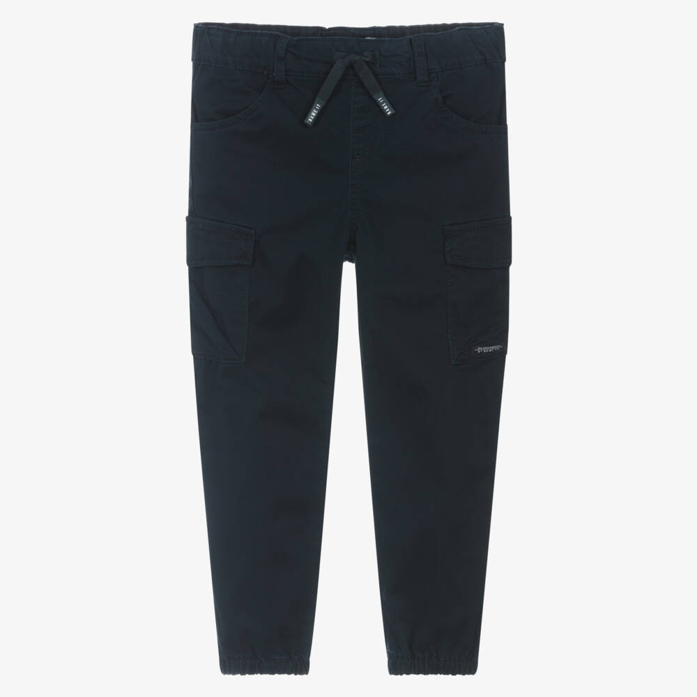 Navy blue trousers for boys by NAME IT, made with soft, recycled cotton. These comfortable trousers have cargo-style pockets on the legs and elasticated cuffs for casual looks. Inside the waistband, there are two elastic tabs to easily adjust the fit.
