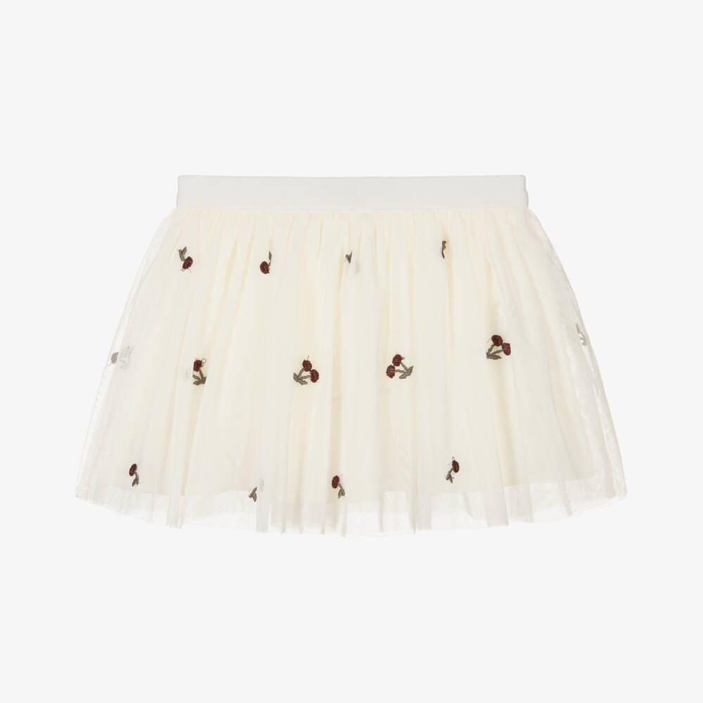 Sweet ivory skirt for girls by NAME IT, embroidered with little cherries. This party style is made in fine tulle, with a stretchy waist and silky lining for comfort.