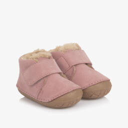Розовые кожаные пинетки с металлическими полосками для девочек