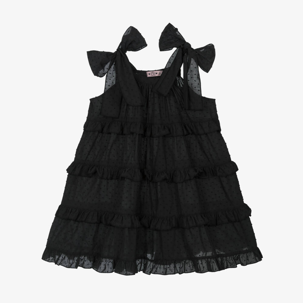 Безрукавное черное платье для девочек от Phi Clothing, идеально подходящее для теплых летних дней. Это очаровательное каскадное платье выполнено из мягкого хлопка плумети с милыми бантовыми лямками и ниспадающими оборками, придающими вневременную элегантность. Легкая ткань из хлопка обеспечивает комфорт и легкость в носке в течение всего дня.