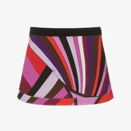 Light pink skirt for little girls by luxury designer PUCCI, made in a lightweight viscose blend. With a white logo embroidered on the back, this pull-on skirt has an elasticated waistband with gentle gathers. The pink and blue Iride print adds a bold splash of colour to the scalloped hem.