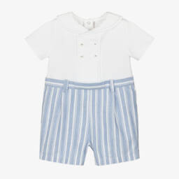 Песочник кремово-синий в полоску из хлопка для малышей