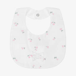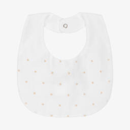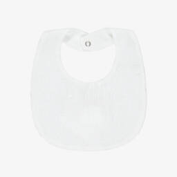 Pale blue cotton bib for baby boys by Pureté Du... Bébé, with a white ric rac trim across the front. Fastening easily with a popper on the back of the neck, this lovely accessory is lined in soft jersey.