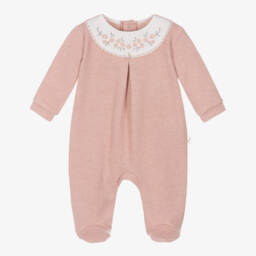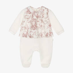 Girls White & Pink Toile de Jouy Cotton Babygrow