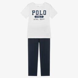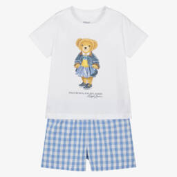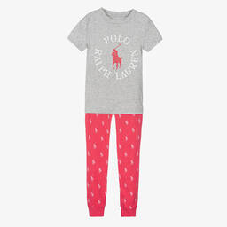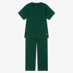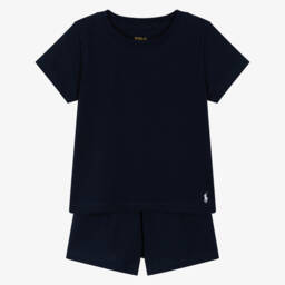 Black short pyjamas for older boys by Ralph Lauren. Made in super soft jersey, they are comfortable for bedtime and relaxed lounging. Both the T-shirt and shorts have coordinating red pony logo embroidery in addition to a bold and colourful Polo logo print for an instant signature look. The shorts have an elasticated waist for easy pull-on.