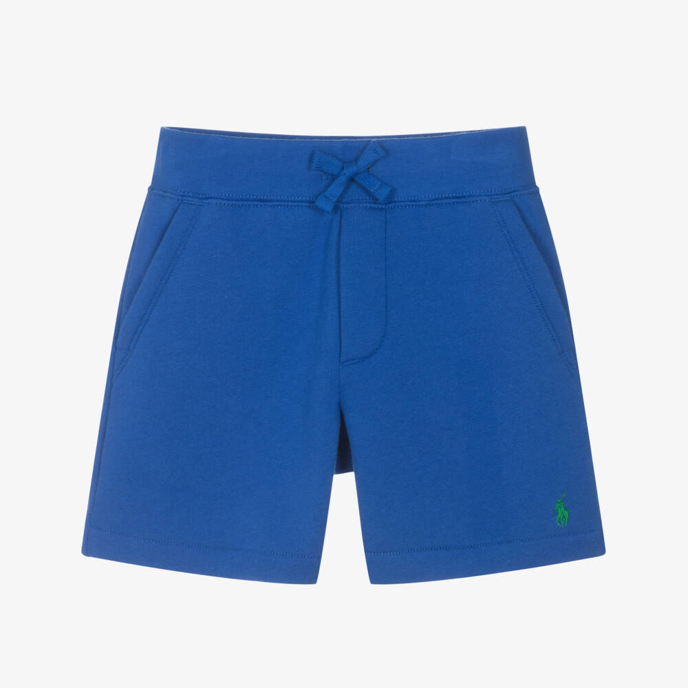 Bright blue cotton blend jersey shorts for boys by Ralph Lauren. Ideal for casual days, these soft and comfortable shorts have an elasticated waist with a drawstring for a secure fit. The brand's iconic pony logo is embroidered in green on one leg for a subtle designer finish.