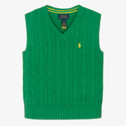 Кремовый трикотажный жилет для девочек от Ralph Lauren из мягкого хлопка - классическое и универсальное дополнение к гардеробу любой девочки. Легендарный логотип пони вышит на груди голубыми нитками, добавляя мгновенное узнавание бренда. Застегивается на пуговицы спереди, идеально подходит для многослойных образов в прохладные дни, создавая вневременной стиль.