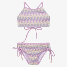 Bright and bold, this white bikini for girls is from Stella Cove. This swimsuit is patterned in a colourful tie-dye print, featuring dramatic ruffled trims. Smooth with stretch, the breathable lining and back hook fastening ensure comfortable wear.
