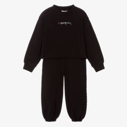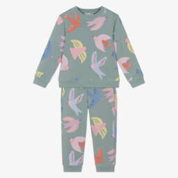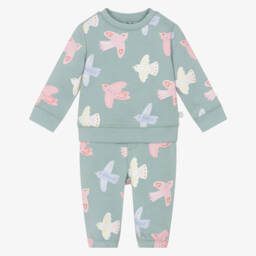 Cute pink tracksuit for little girls by Stella McCartney Kids. Made in soft organic cotton jersey, it features smiling daisy faces in yellow and white. The top is branded on the front and has shoulder poppers to help with dressing. The joggers have an elasticated drawstring waist for a comfortable fit and useful side seam pockets.