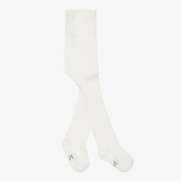 Pretty pale pink tights for girls by French brand Tartine et Chocolat. Knitted in a soft and stretchy cotton blend, they have a delicate pointelle pattern and a pearly logo disc on one ankle.