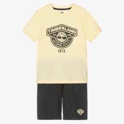 Inspired by the adult collection, this blue shorts set for younger boys by Timberland is made from soft organic cotton jersey. The T-shirt has a bold logo print on the front, featuring the designer's signature tree logo and poppers on one shoulder to help with dressing. In a darker shade of blue, the shorts have side seam pockets and a drawstring waistband for a comfortable fit.