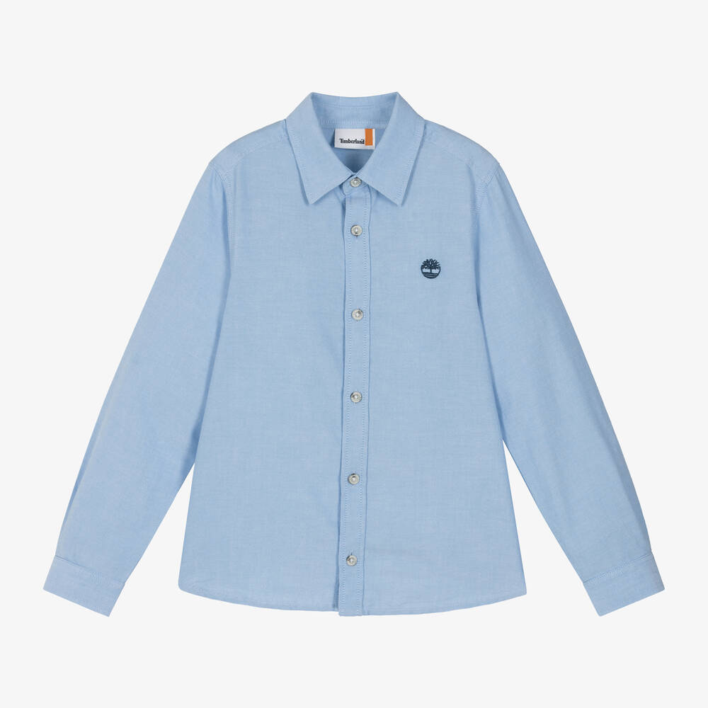 Boys classic light blue Oxford cotton shirt by Timberland. Soft and lightweight, it fastens with branded buttons on the front and cuffs. The iconic tree logo embroidery adds a signature finishing touch to this smart-casual look.