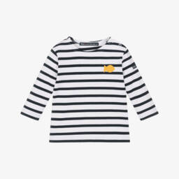 Бело-синий топ в бретонскую полоску из хлопка для девочек