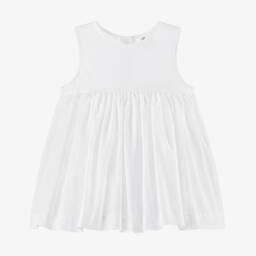 Little girls pale pink petticoat by Sarah Louise, softly woven in a cotton blend. Ideal for adding a fuller shape underneath dresses, this sleeveless style is plain pink and fastens with discreet buttons on the back. The voluminous skirt is formed by layers of structured tulle and plain woven fabric.