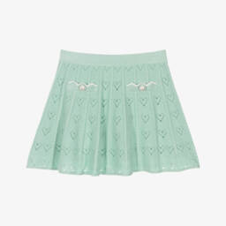 Dark blue wash denim skirt for girls by Self Portrait, beautifully patterned with bows. Made with cotton, this stylish pleated design has an exposed zip fastening and concealed side seam pockets.