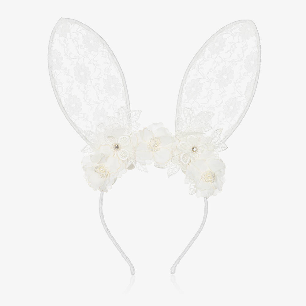 White Lace Bunny Ears Hairband