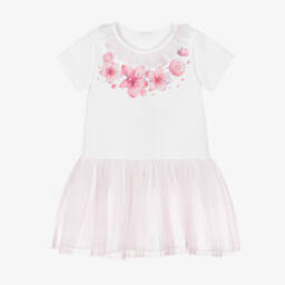 Girls Pink Floral & Tulle Dress