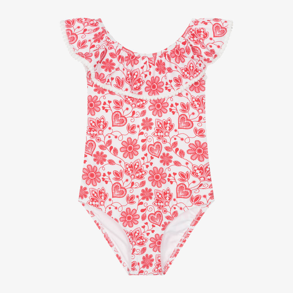 Girls Red Floral Swimsuit