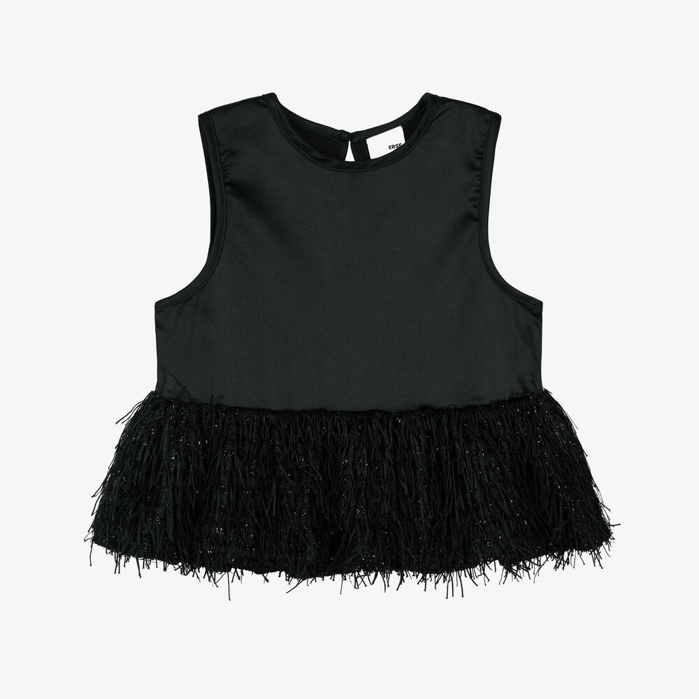 Girls Black Fringe Blouse