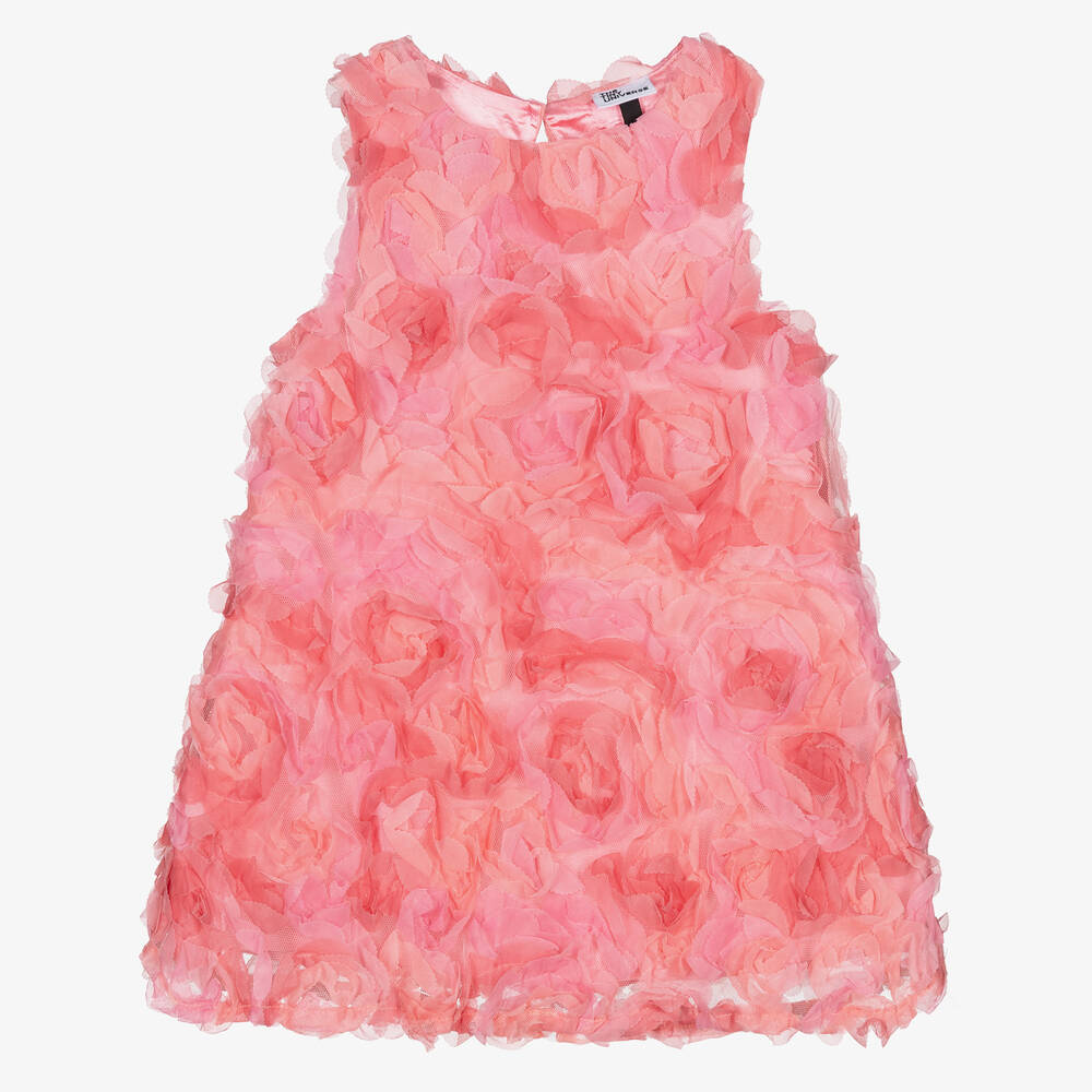 A lovely pink A-line dress for girls by The Tiny Universe. Ideal for any occasion, it has soft textured flowers in shades of pink and a silky satin lining for comfortable wear. There is a single button fastening on the back.