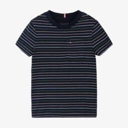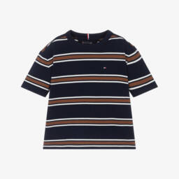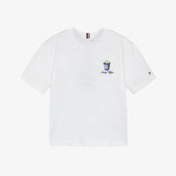Ivory and pink striped T-shirt for baby girls by Tommy Hilfiger, offering a mix of comfort and style. It is made in soft ribbed jersey from organic cotton, with a gentle stretch for ease of movement and a popper fastening on the back. Layered, ruffle sleeves add a pretty touch and the brand's signature flag logo is embroidered on the chest.