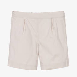 Beige shorts for boys by Tommy Hilfiger, woven in soft cotton twill. Designed in a slim fit, this classic style is ideal for both smart and casual occasions. They are embroidered on the back with the brand's signature flag logo and styled with useful pockets and an adjustable waistband. A removable, striped webbed belt with a D-ring fastening completes the look.