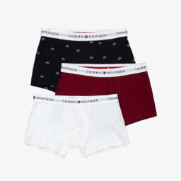 A pack of three pairs of boxer shorts for older boys by Tommy Hilfiger, in black, white and grey marl. They have both comfort and brand appeal, being made in soft jersey with white, elasticated, jacquard logo waistbands.