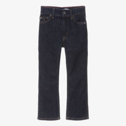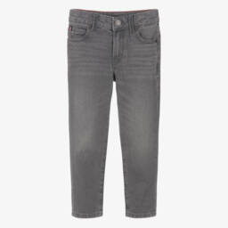 Cool, grey stone wash jeans for boys by Tommy Hilfiger, with the designer's embroidered signature flags and stripes. In a straight fit, they are made in soft denim with a classic five-pocket styling and silver tone rivets.