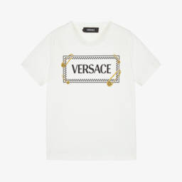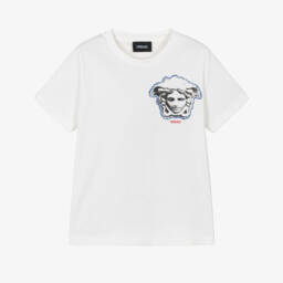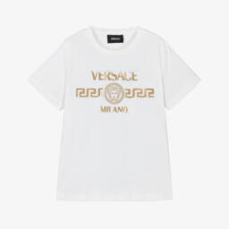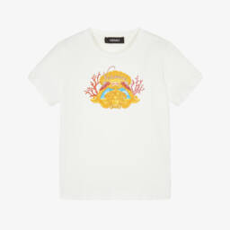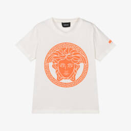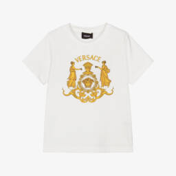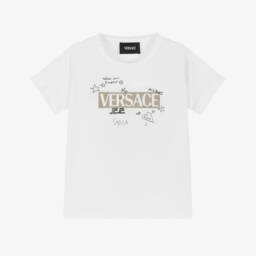 Grey marl T-shirt for boys and girls from Versace, made in beautifully soft cotton jersey for comfortable, stylish wear. Adding instant designer appeal, the luxury Italian designer's logo can be seen on the front in a marble-effect, glitter-infused print.