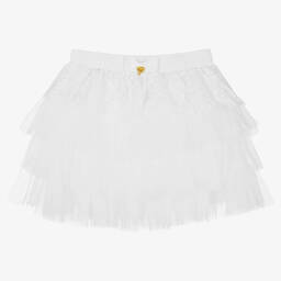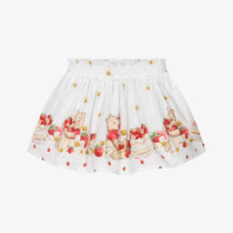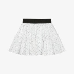 A white asymmetric skirt for girls by Wauw Capow by Bangbang, with a fun black polka dot print. Made from tiers of soft lightweight viscose, this casual skirt has a stretchy elasticated waistband for a good fit.