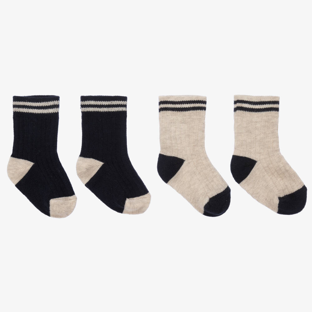 In a pack of two pairs, these navy blue and beige socks for little boys and girls are by 1 + in the family. Made in a stretchy cotton blend, they are soft comfortable for little feet.