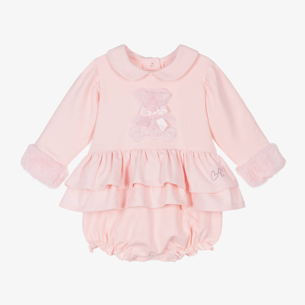 Baby Girls Pink Cotton Teddy Bear Shortie