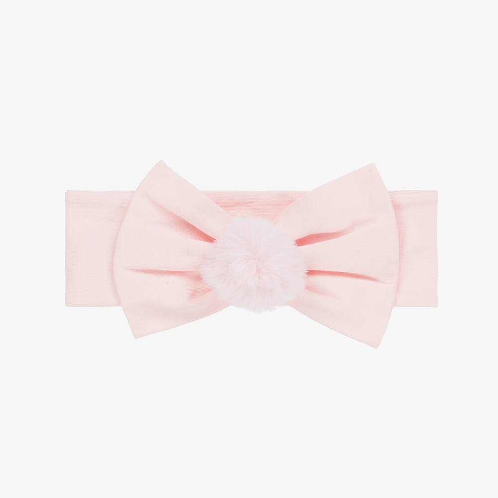 A delightful accessory for younger girls, this pale pink headband is from Little A by A Dee. Made from soft and stretchy cotton jersey for extra comfort, it is decorated with a pretty appliqué bow and fluffy pom-pom for a fun finish.