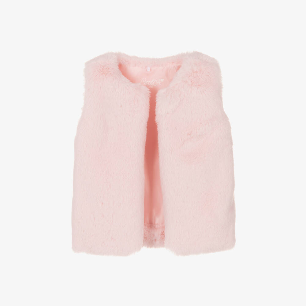 A gorgeous pale pink gilet for younger girls from Little A by A Dee, made from beautifully soft faux fur. Ideal for layering on those cooler days, this cute sleeveless piece is comfortably lined in silky satin.