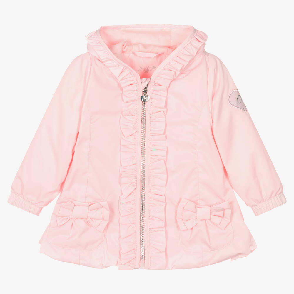 Girls Pink Ruffle Hooded Coat