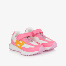 In white, pink and purple, these sporty trainers for girls are from Bonini by A Dee. Made in a mix of faux leather and textile, they have elasticated laces for easy put-on and a velcro strap for quick fastening. Lined in soft textile, they have a padded insole for comfort and a non-slip rubber sole for good grip. An orange 'B' logo on the side adds a touch of branding.