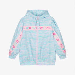 Pretty pink jacket for girls by A Dee, made in soft scuba jersey. Patterned with purple hearts and stars, this cute piece has statement puffed sleeves for a striking silhouette. The cuffs, hem and neckline are all detailed with logo taping, and it fastens with a smooth zip on the front for easy dressing.