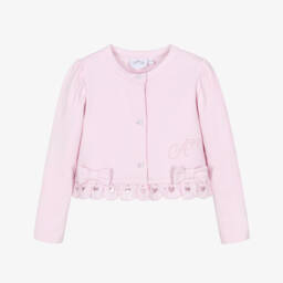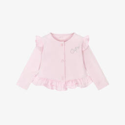 Younger girls yellow cardigan from Little A by A Dee, made in soft and stretchy cotton jersey. This long-sleeved cardigan has cute frills on the shoulders and hem, decorated further with small bows and gingham check details. Its button-up design ensures easy layering over tops and T-shirts.